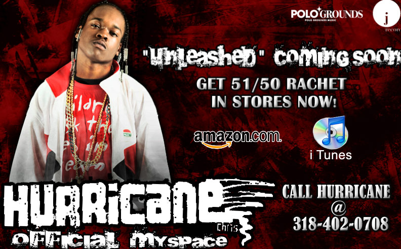 With over 3.5 million combined ringtones and downloads for "A Bay Bay," and his second single "Hand Clap" certified Gold, the young lyricist's debut album 51/50 Rachet made quite an impression on fans. 2009 has also proven to be an exciting year for Hurricane Chris as he gears up for the release of Unleashed.